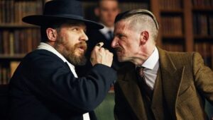 A gangster family epic set in 1919 Birmingham, England and centered on a gang who sew razor blades in the peaks of their caps, and their fierce boss Tommy Shelby, who means to move up in the world.